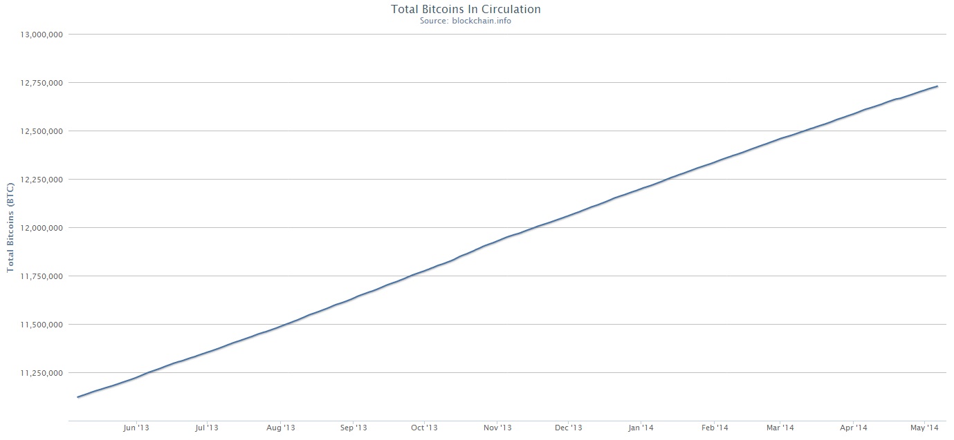 - Blockchain – Total Bitcoins in Circulation retrieved 6-5-2014