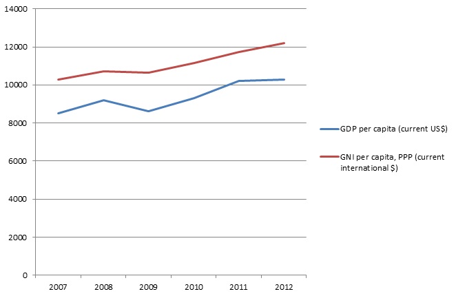 - World Bank – GNI per capita PPP current international $ retrieved 1-5-2014
